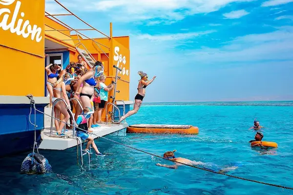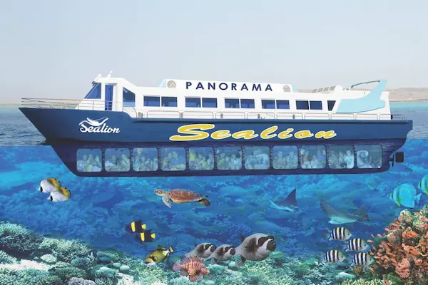 Ta wycieczka rodzinowej dla których chcą z dziecimi snurkowanie lub oglądanie podwoda na inny świat pod morzem i zobaczyc prawie 1000 rodzajów ryb w naszym morzem czerwonym i dla których myślą o krótkie wycieczka rano zbieramy się z hotelu jest 2 czasu rano lub po południowe do Promenada marina ładne widok i płyniemy dużym statkiem zobaczyć z góry panorama po morzu i pod wodą przez okna zobaczyć ryby i rafy i show naszym Instryktorym z rybkami i później powrót do portu i do hotelu
